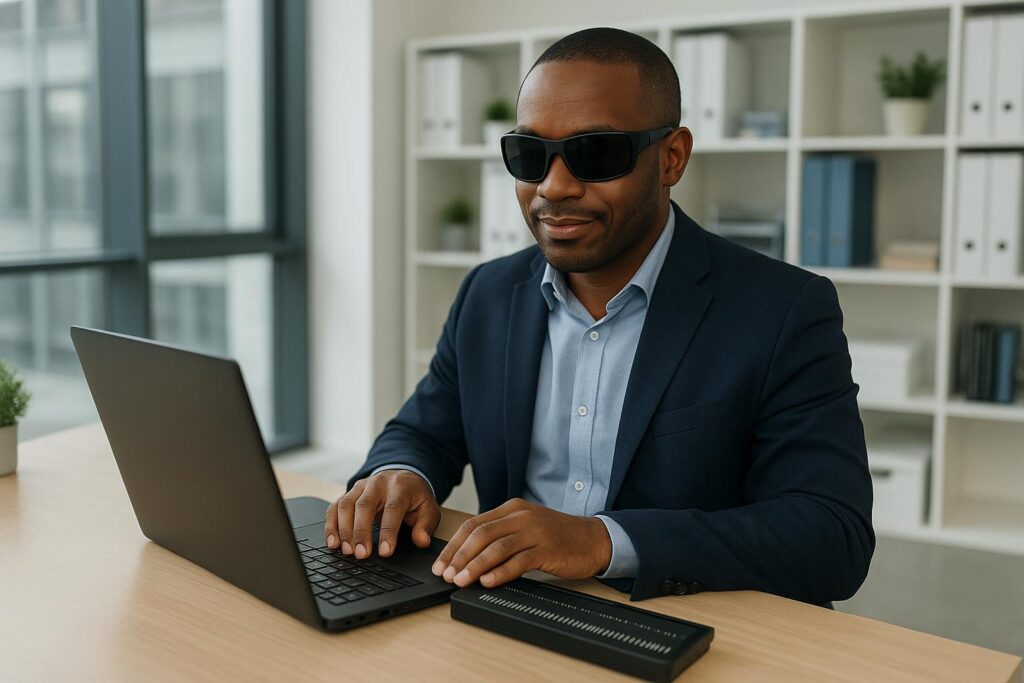 Legally blind professionals rely on accessibility features for better productivity and user experience in the workplace.